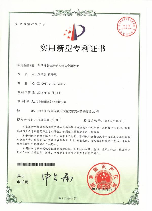 川安消防產(chǎn)品有預(yù)作用裝置、濕式報(bào)警閥、雨淋報(bào)警閥、活塞式雨淋報(bào)警閥、干式報(bào)警閥、減壓閥、泄壓閥、末端試水裝置、智能末端試水裝置、水流指示器、灑水噴頭、干式灑水噴頭、雨淋噴頭、特殊應(yīng)用噴頭、易熔合金灑水噴頭、齊平式灑水噴頭、早期抑制快速響應(yīng)(ESFR)噴頭、擴(kuò)大覆蓋面積灑水噴頭、水霧噴頭、水幕噴頭、泡沫噴頭、室內(nèi)消火栓、室外消火栓、智能消火栓、消防水泵接合器、消防水槍、消防接口、 不銹鋼內(nèi)扣式接扣、壓力開關(guān)、消防信號(hào)閘閥、消防信號(hào)蝶閥、消防閘閥、消防蝶閥、消防軟管卷盤、有襯里消防水帶、固定式消防炮、消火栓箱、防爆壓力開關(guān)、防爆電磁閥、防爆消防信號(hào)蝶閥、卷簾式水帶箱、壓力式比例混合裝置、半固定式(輕便式)泡沫滅火裝置、閉式泡沫-水噴淋系統(tǒng)、低倍數(shù)空氣泡沫產(chǎn)生器、泡沫槍、泡沫消火栓、泡沫消火栓箱、泡沫滅火劑、水系滅火劑、滅火器(干粉、水基、二氧化碳)、七氟丙烷(單柜、雙柜、4.2內(nèi)貯壓式、5.6內(nèi)貯壓式、4.2外貯壓式、5.6外貯壓式)、懸掛式七氟丙烷等500多種,產(chǎn)品均經(jīng)國(guó)家檢測(cè)中心檢測(cè)合格并取得公安部消防產(chǎn)品型式認(rèn)可和自愿性認(rèn)證證書。產(chǎn)品廣泛應(yīng)用于眾多國(guó)家級(jí)重點(diǎn)工程,大型公眾場(chǎng)所和專業(yè)市場(chǎng)等,深受客戶認(rèn)可與好評(píng)。