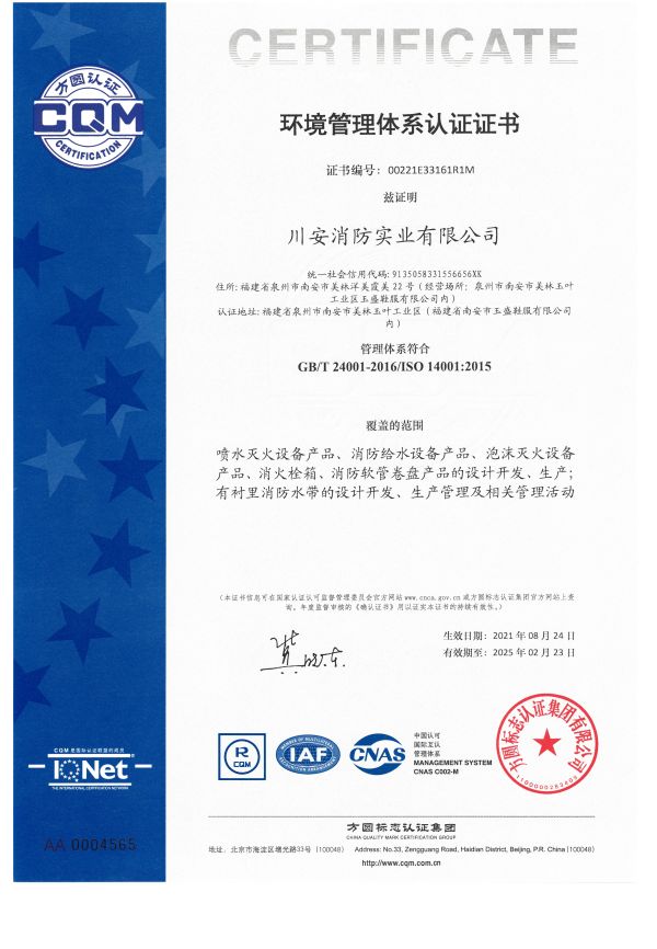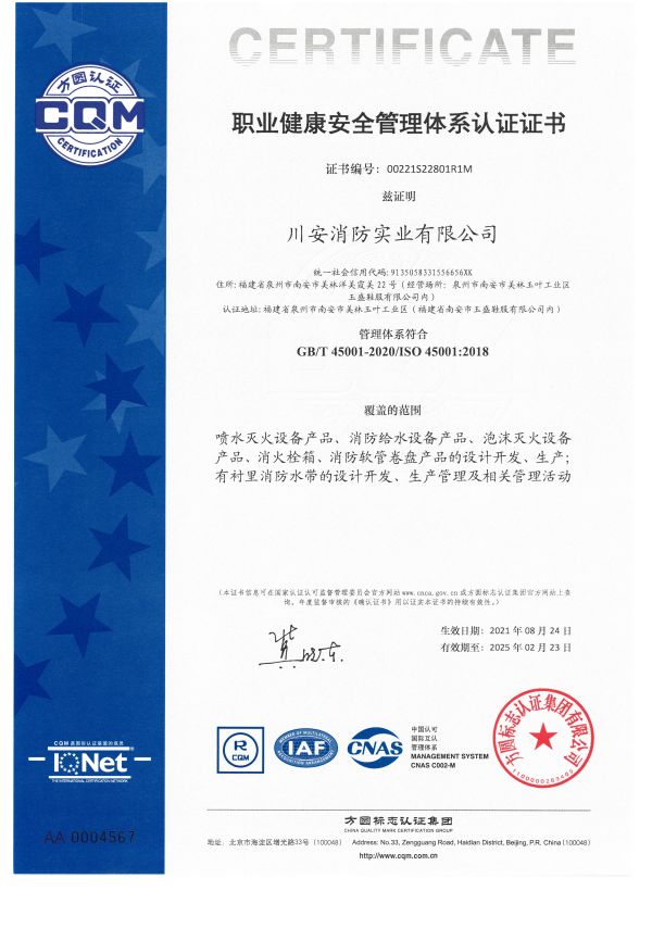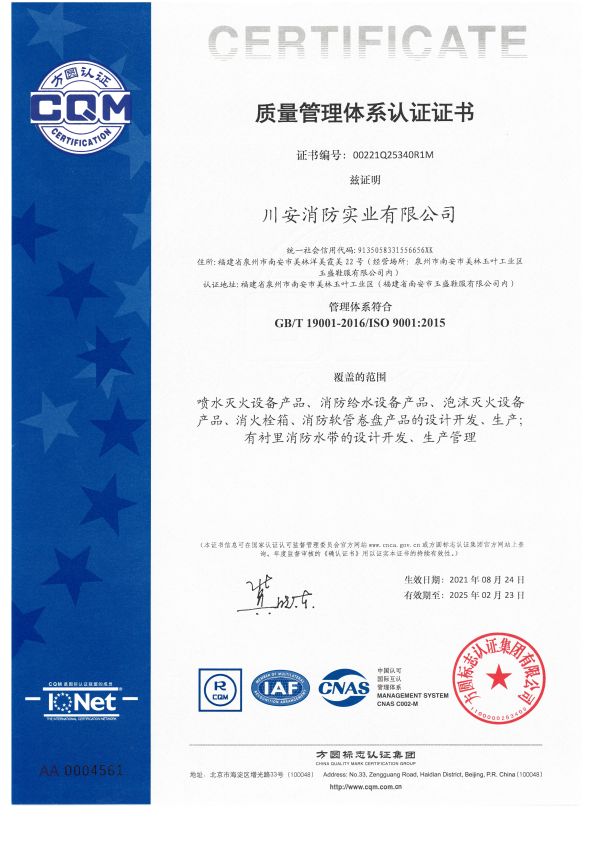 風(fēng)雨歷程,銳意進(jìn)取,敢為人先。川安消防實(shí)業(yè)有限公司創(chuàng)建于2012年,位于福建東南沿海著名僑鄉(xiāng)泉州市南安,是一家集”研發(fā)、生產(chǎn)、銷售、服務(wù)”為一體的消防設(shè)備產(chǎn)品專業(yè)生產(chǎn)企業(yè),以“用產(chǎn)品和服務(wù)為用戶創(chuàng)造價(jià)值”的經(jīng)營(yíng)理念,公司緊跟先進(jìn)制造和檢測(cè)技術(shù)發(fā)展方向,不斷開展技術(shù)創(chuàng)新,追求高質(zhì)量品質(zhì)、為客戶提供優(yōu)質(zhì)的產(chǎn)品和服務(wù)。